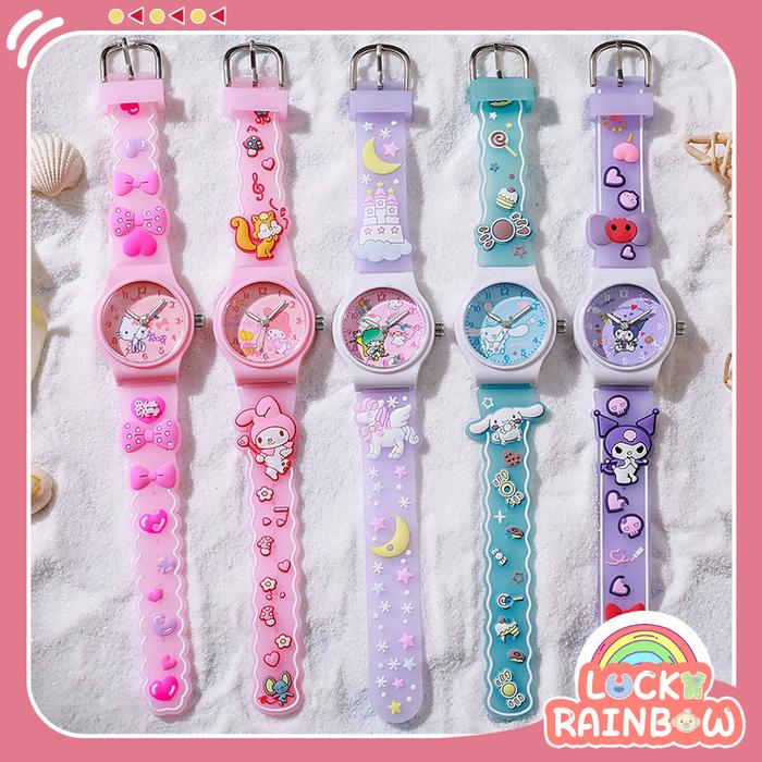3D JAM TANGAN ANAK DENGAN TALI KARET TRANSPARAN DAN MOTIF KARAKTER KAWAII SANRIO SEPERTI MELODY, KUROMI, CINAMOROLL - KT