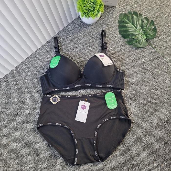 One Set Sorex Bh Set Super Soft Bra Casual Style Cup Kecil Tanpa Kawat Terlaris #32 (Bra+Cd) Wanita Setelan - Hitam, 34