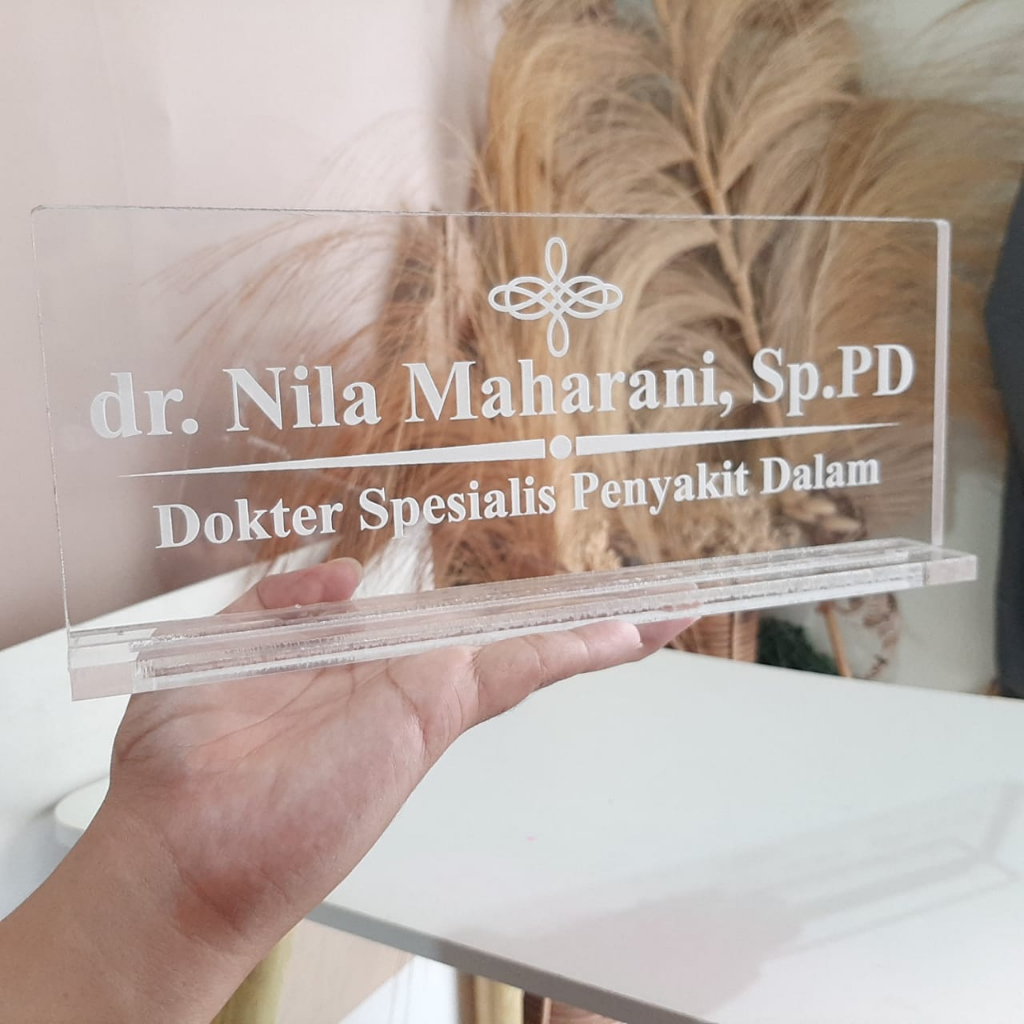 FLASH SALE Papan Nama Meja Kantor Akrilik Bening Tulisan Ukir Tebal 8mm