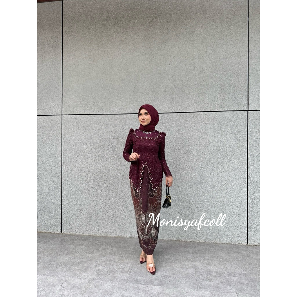Fee hijab Akita-HANYA RANIA SET SONGKET Kebaya Wanita Lace berfuring Baju Formal Kondangan, Lamaran Wisuda Material Prem