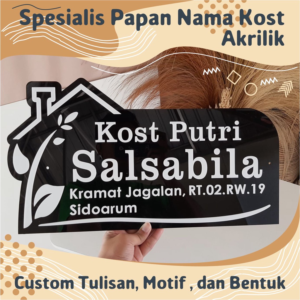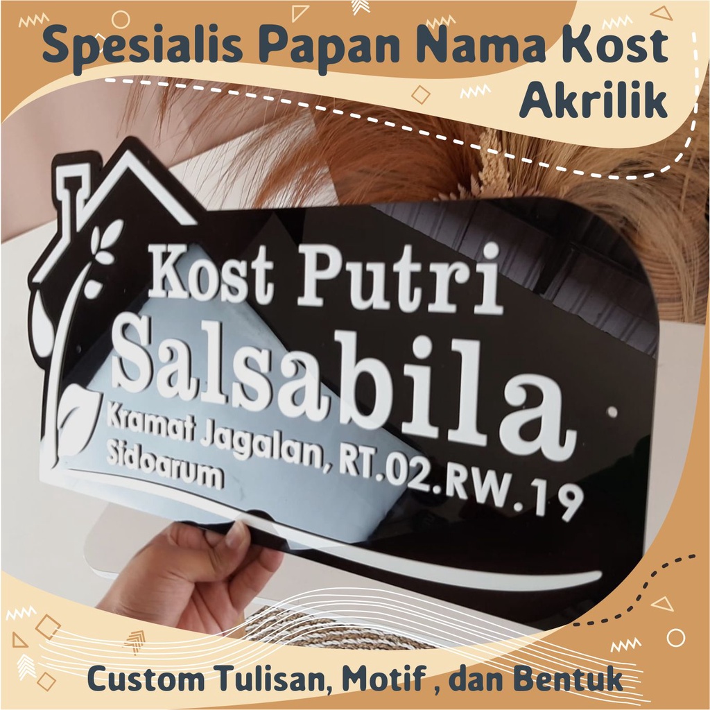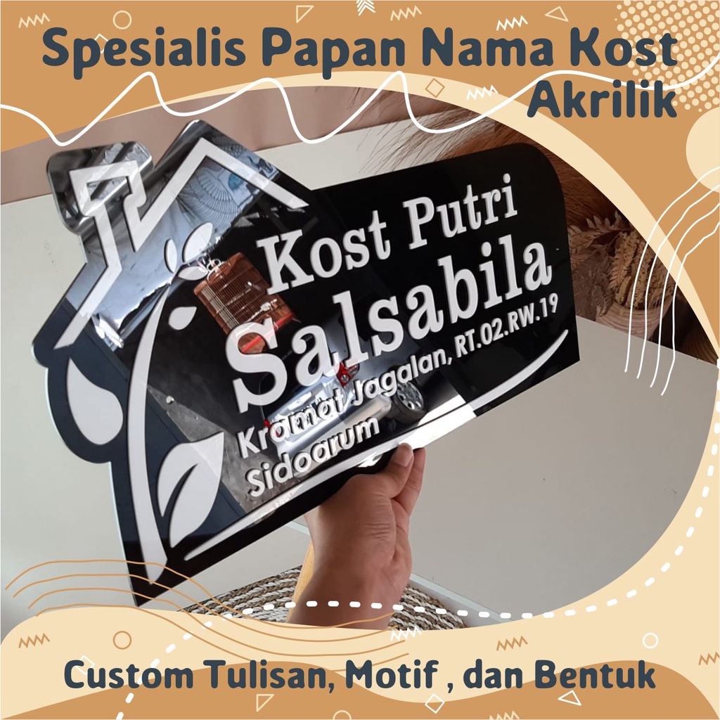 FLASH SALE Papan Nama Kost Tulisan Akrilik Timbul Glossy Ukuran Medium
