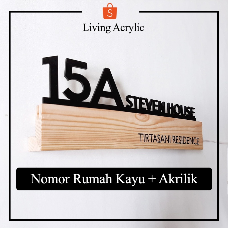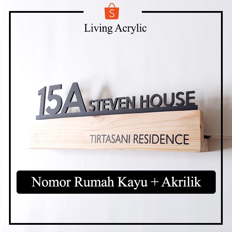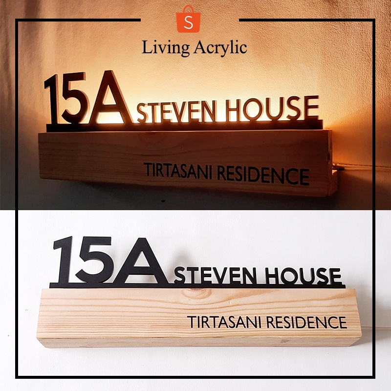 FLASH SALE Papan Nomor Rumah Kayu Dan Akrilik LED Nomer Rumah Kayu Pinus Nyala