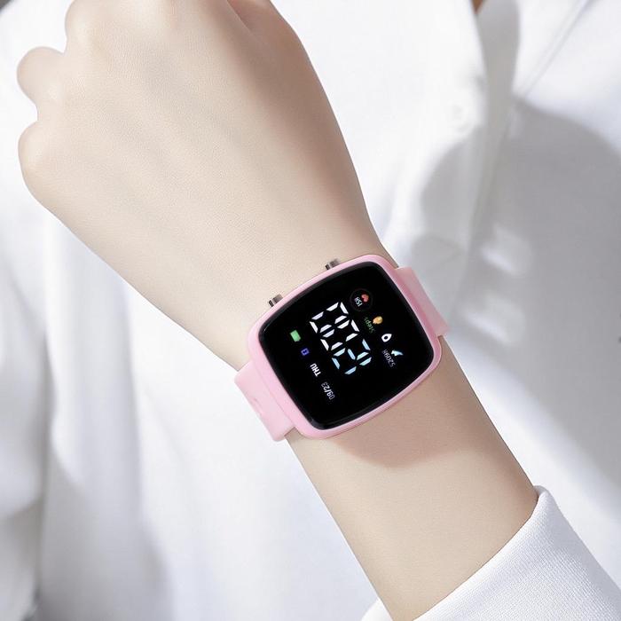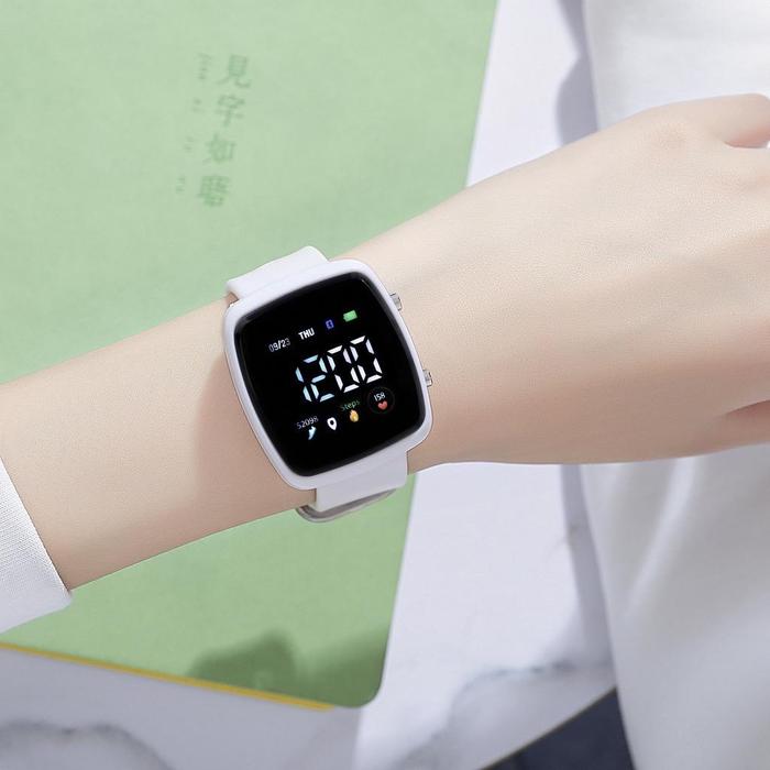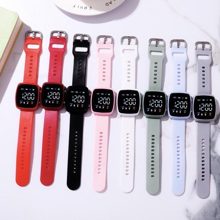 KJ JAM TANGAN PRIA WANITA LED DIGITAL RUBBER COUPLE ANAK REMAJA FASHION RM015 KARET - (T18-3) PUTIH