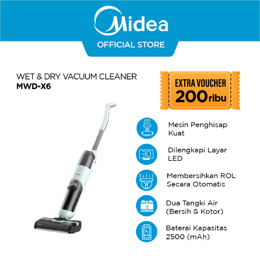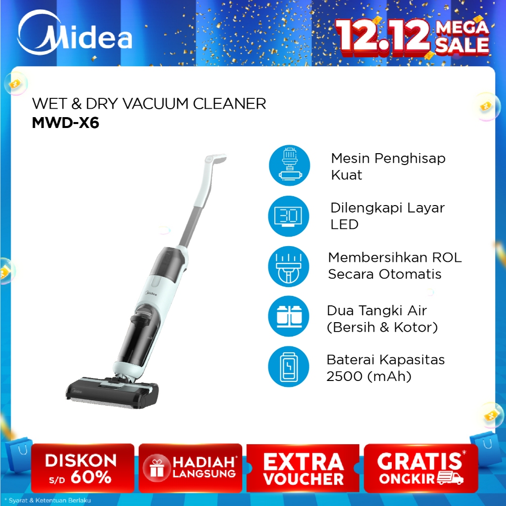 Midea Cordless Vacuum Cleaner 3 In 1 MWD-X6 Menyapu Sedot Debu & Pel Sekaligus untuk Lantai dan Karpet | Garansi Resmi d