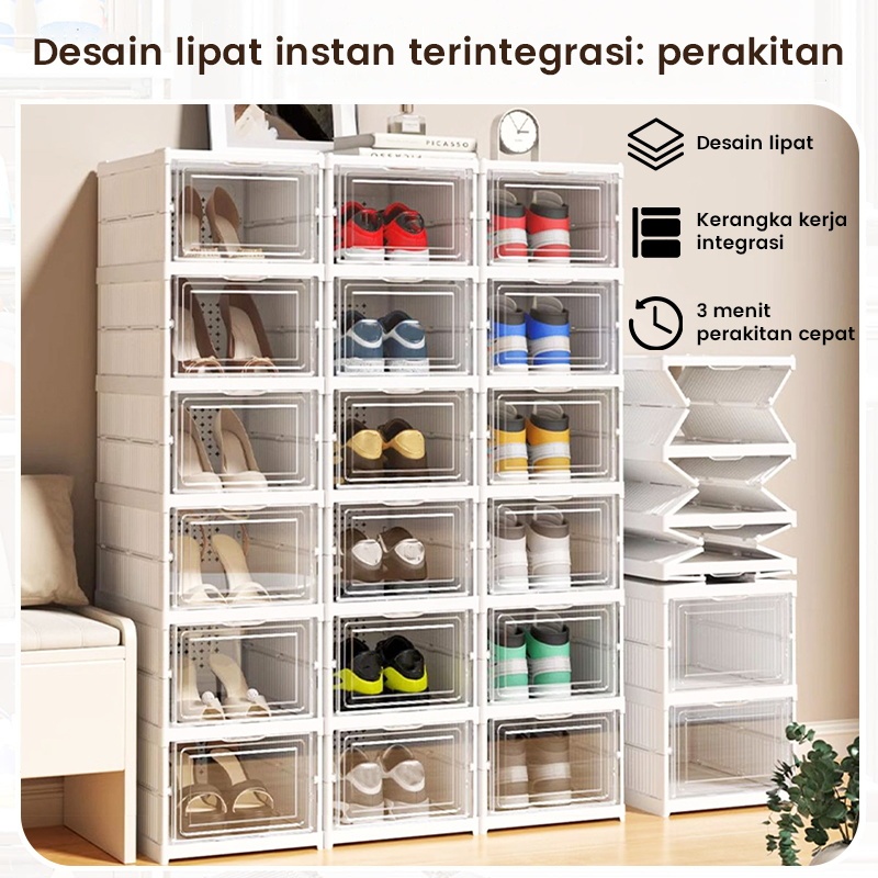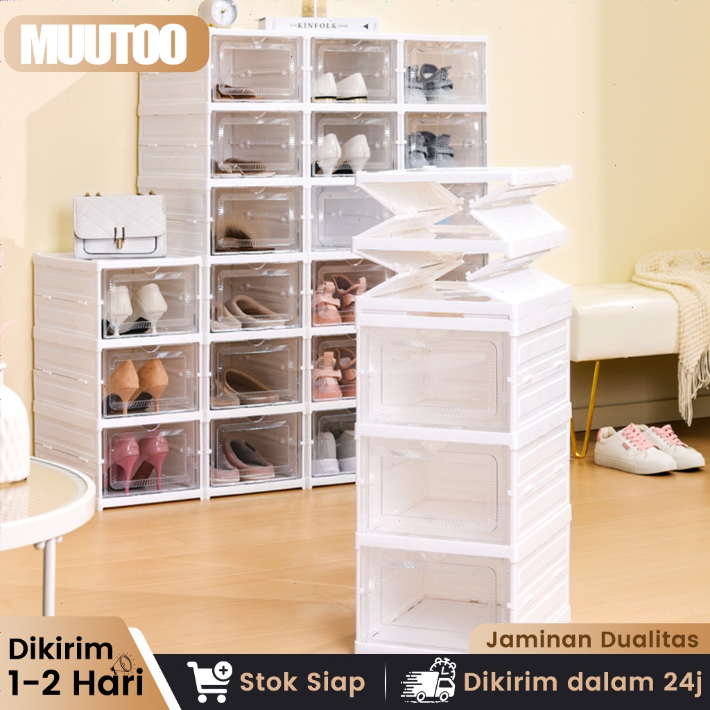 FLASH SALE MUUTOO Sepatu Lipat Lemari Sepatu Kotak Sepatu Lipat Rak Lipat Kotak Sepatu Transparan Plastik