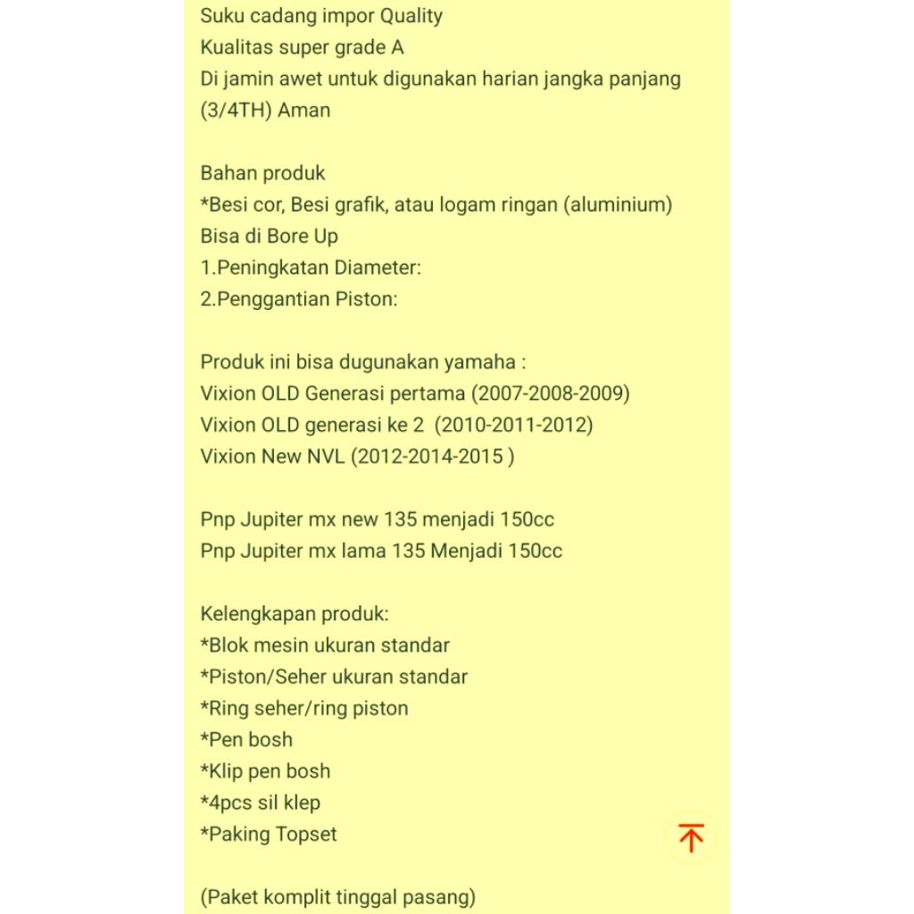 BLOK SEHER+PISTON KIT 1PA VIXION OLD 2007-2010 VIXION NEW NVL 2012-2015 PNP MX OLD MX NEW OEM IMPOR QUALITY