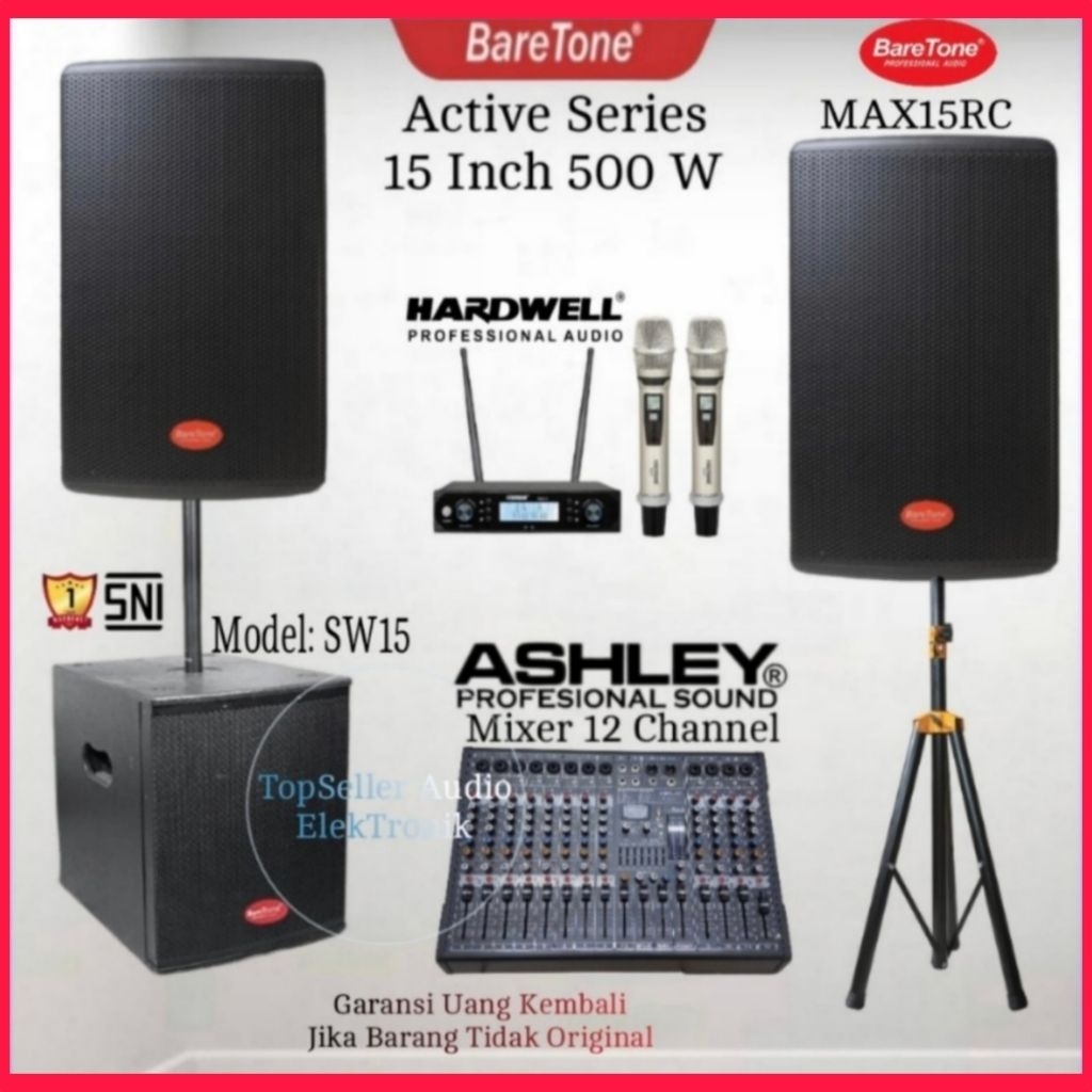 Paket Sound System Outdoor Karaoke Live Musik Dll Speaker Aktif BareTone MAX15RC Subwoofer Aktif 15 Inch BareTone SW15 M