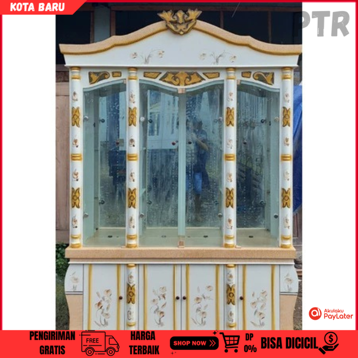lemari kaca ruang tamu Pajangan Kristal Rak Kaca 4 Baris Blokthik lemari pajangan ruang tamu