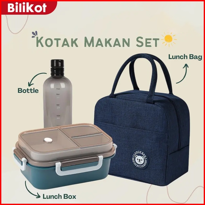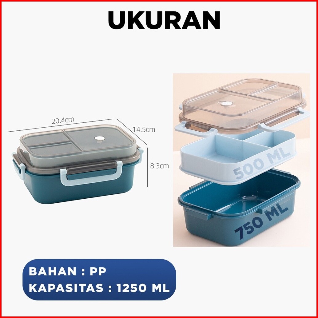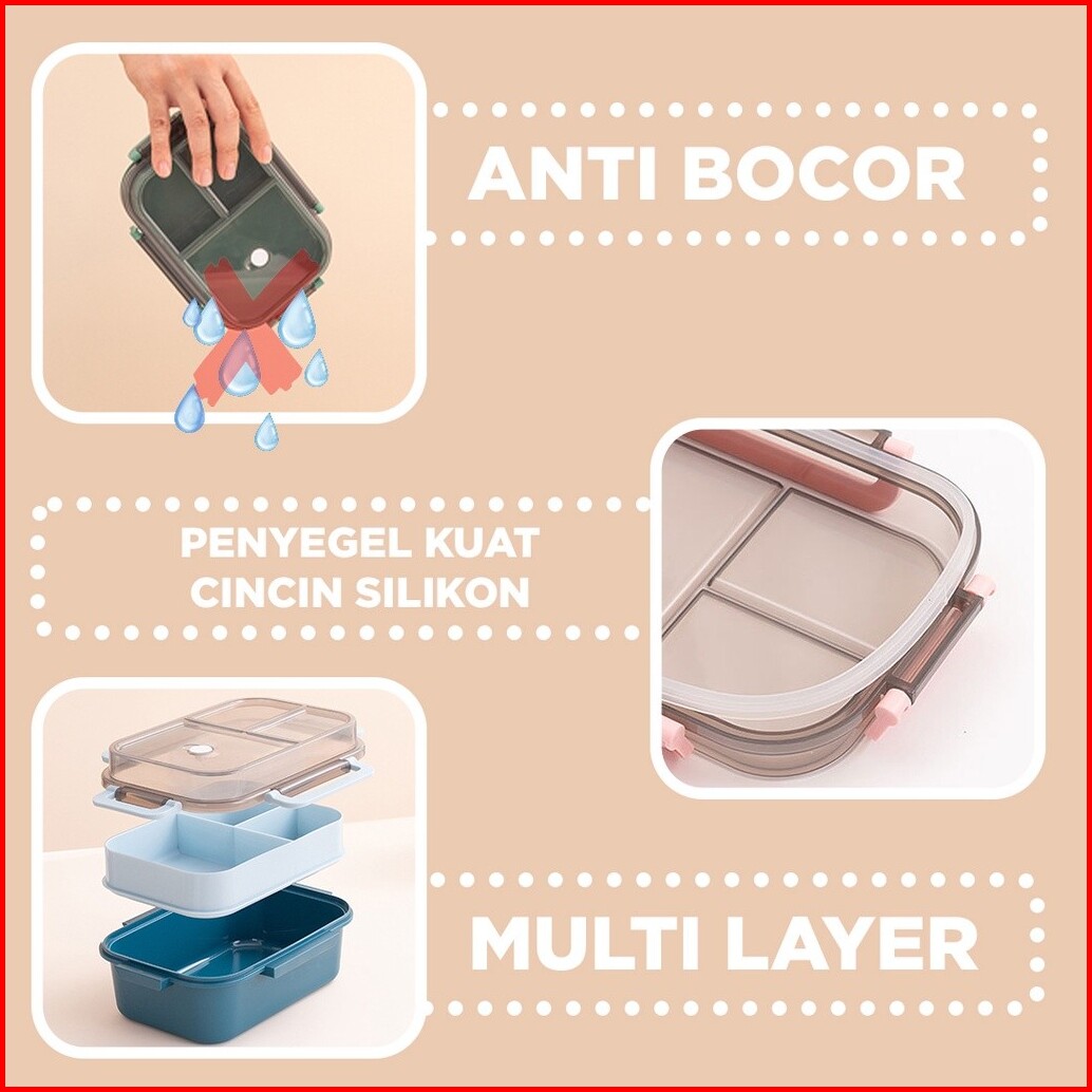Bilikot - 3in1 Kotak Makan Set Tempat Makan 2 Tingkat 3 Sekat Anti Tumpah I Lunch Box Susun Free Sendok Garpu Portable I