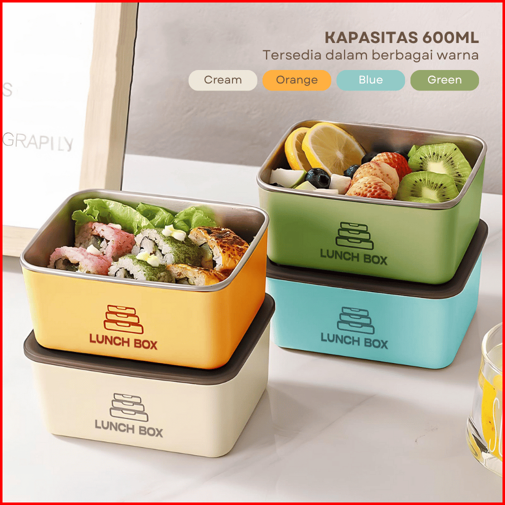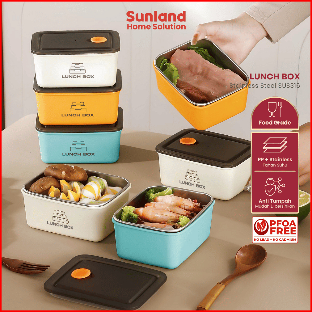 Sunland Home Solution - Lunch Box Kotak Bekal Penyimpanan Makanan Kontainer Sayur Buah Stainless Dengan Tutup Sus 316