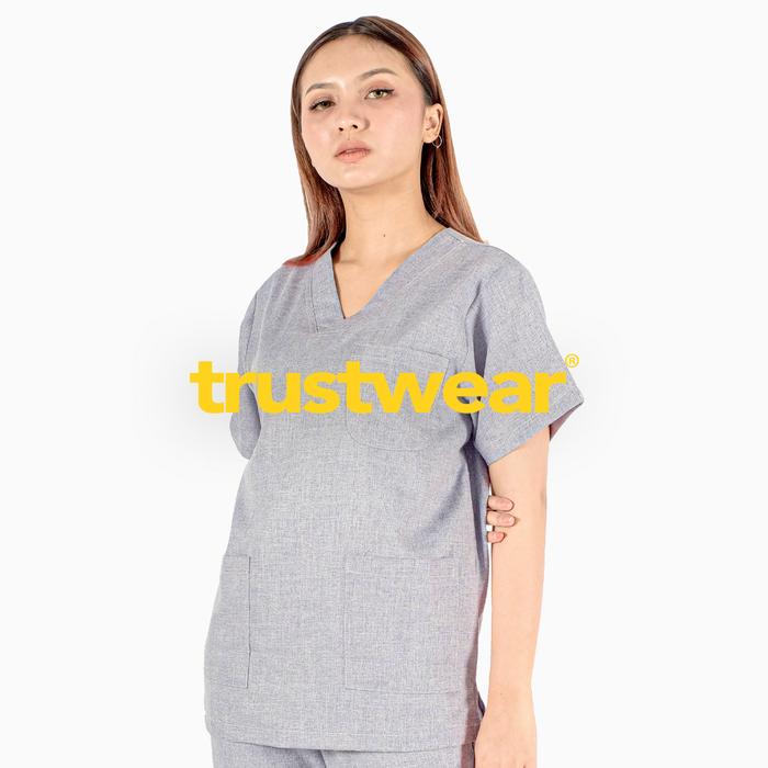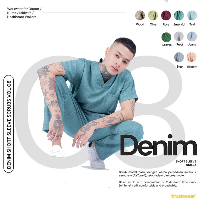 TRUSTWEAR - DENIM DOCTOR’S SCRUB / SET BAJU CELANA JAGA OKA OK PERAWAT / DOKTER LENGAN PENDEK VIII - DENIM FROST, L