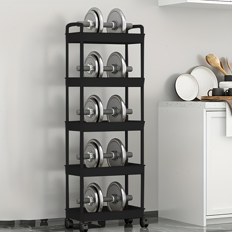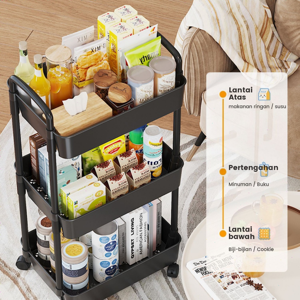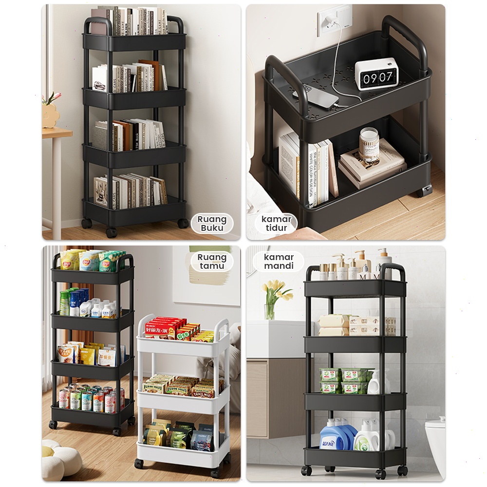 FLASH SALE MUUTOO Rak Persegi Dapur Plastik Rak Plastik 3-5 Susun 4 Roda