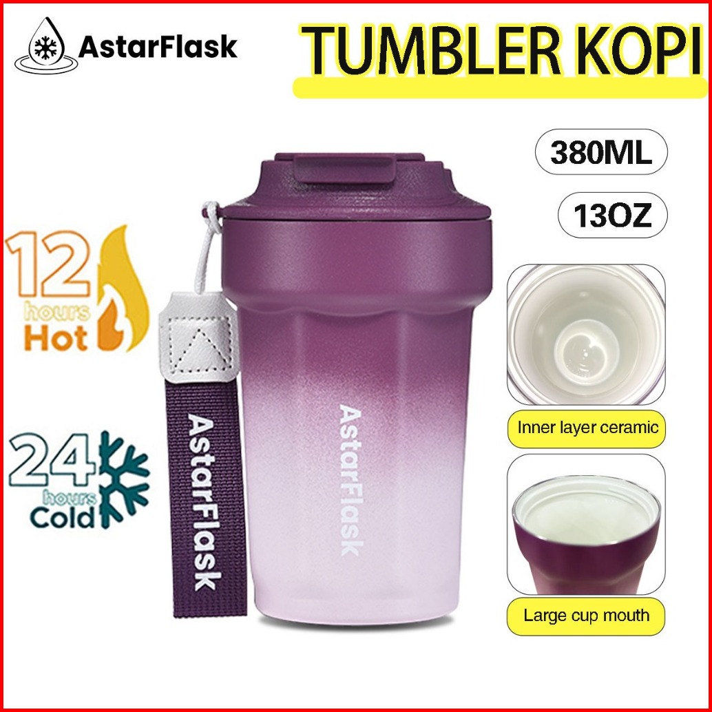 Astarflask 380ml 13oz Tumbler Stainless Dengan Lapisan Keramik Tumbler Tahan Panas Dingin 24 Jam Mug Kopi Portable Gelas