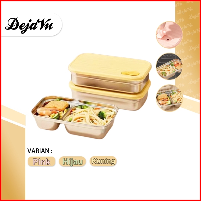 Dejavu Tempat Bekal Sekat Makanan Lunch Box Stainless Kotak Makan Grid Bento Anti Tumpah Hmb147