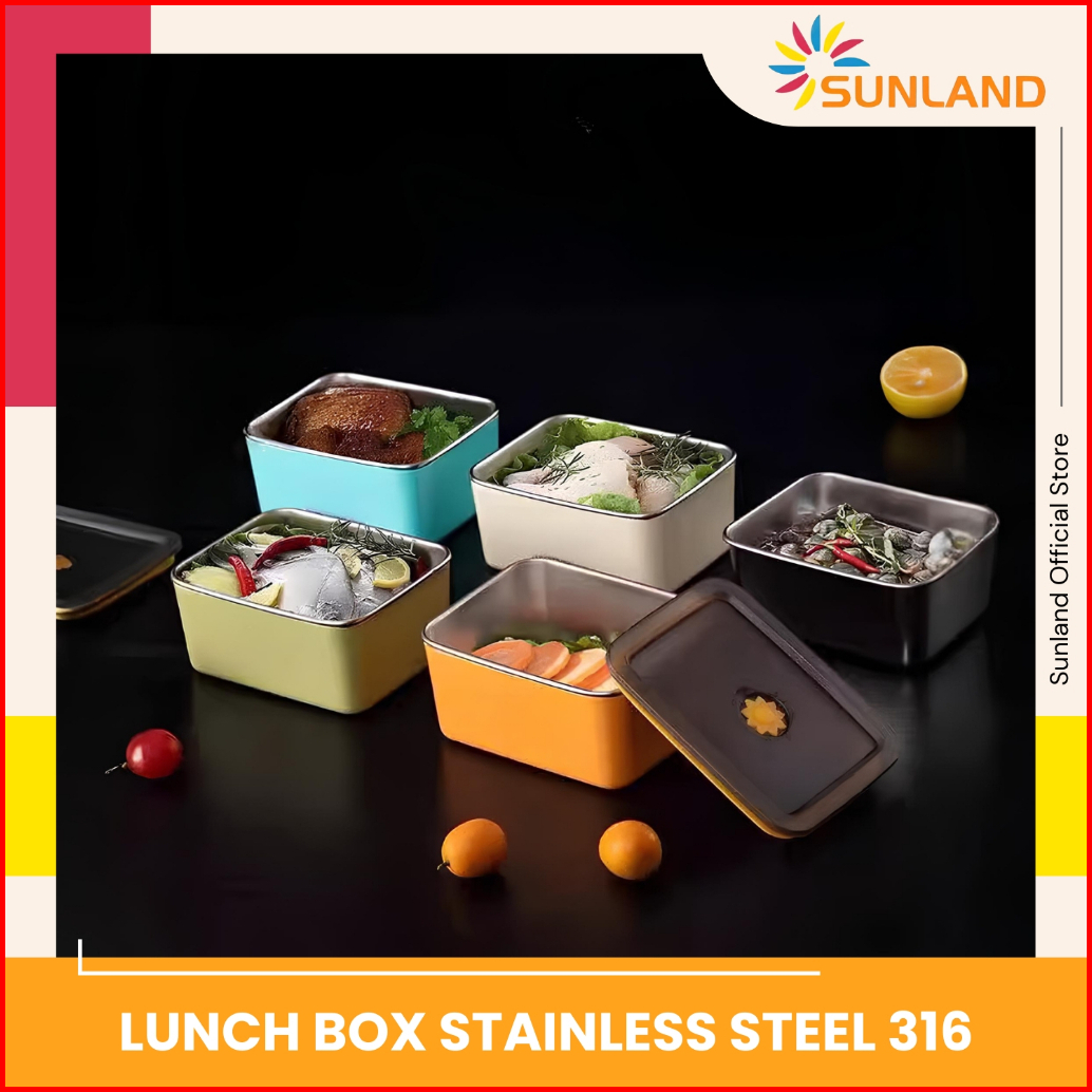 Sunland Tempat Makan 600ml Stainless Steel Sus316 Lunch Box Mini Aesthetic Kotak Bekal Anti Tumpah