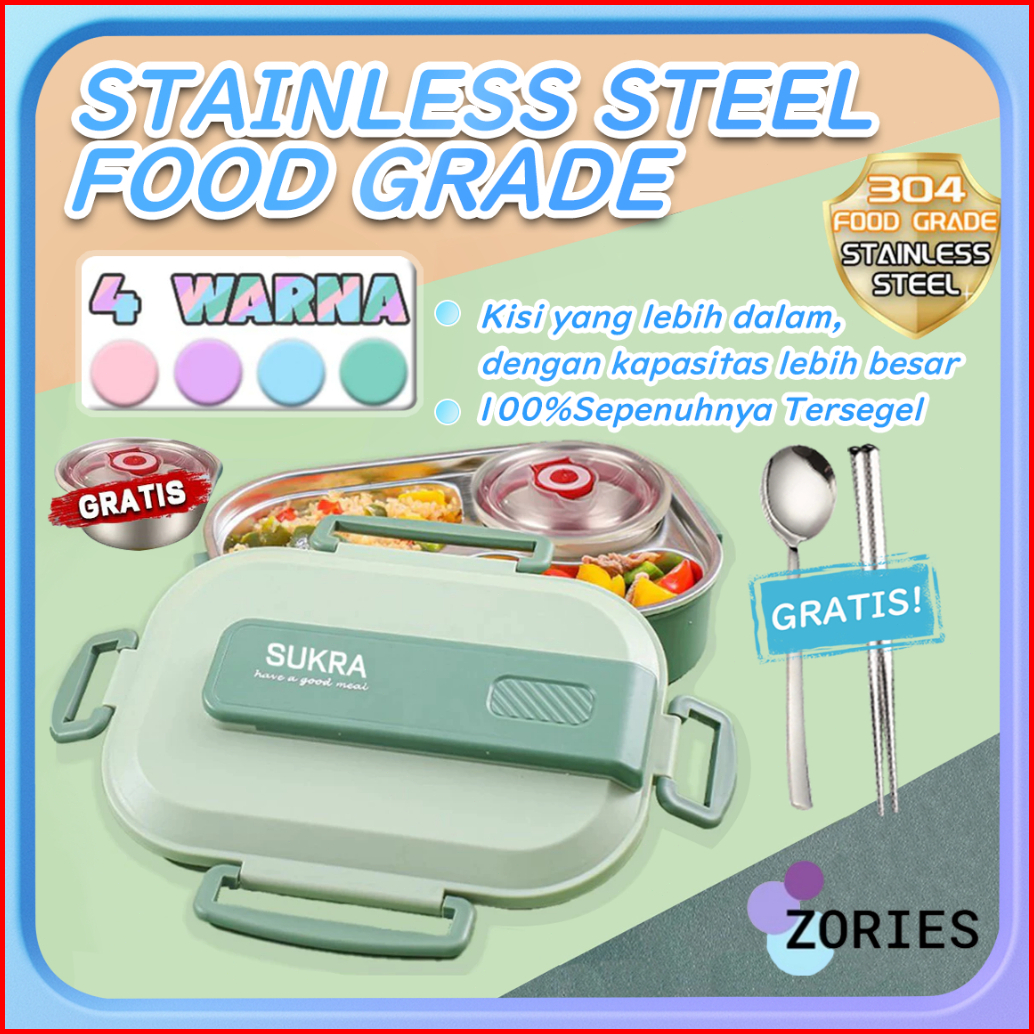 Zorieskotak Makan 3 4 Sekat Stainless Anti Tumpah Anak Lucu Karakter Anak Perempuan Plastik Tempat Makan 3 4 1000ml Kore