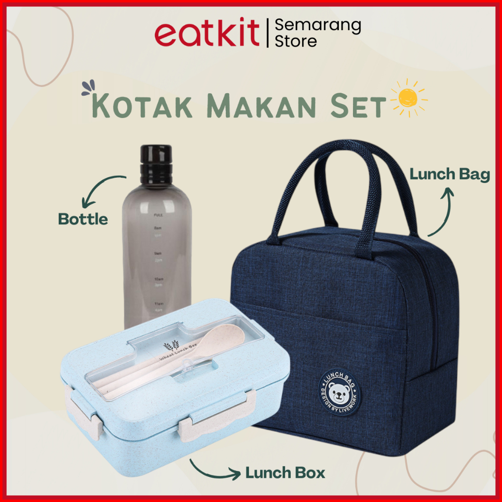 Eatkit Lunch Box Set Kotak Bekal Makan Jerami Gandum Paket Kotak Makan 1000ml Free Sendok Sumpit