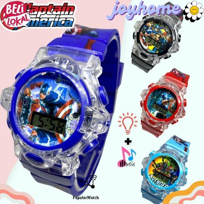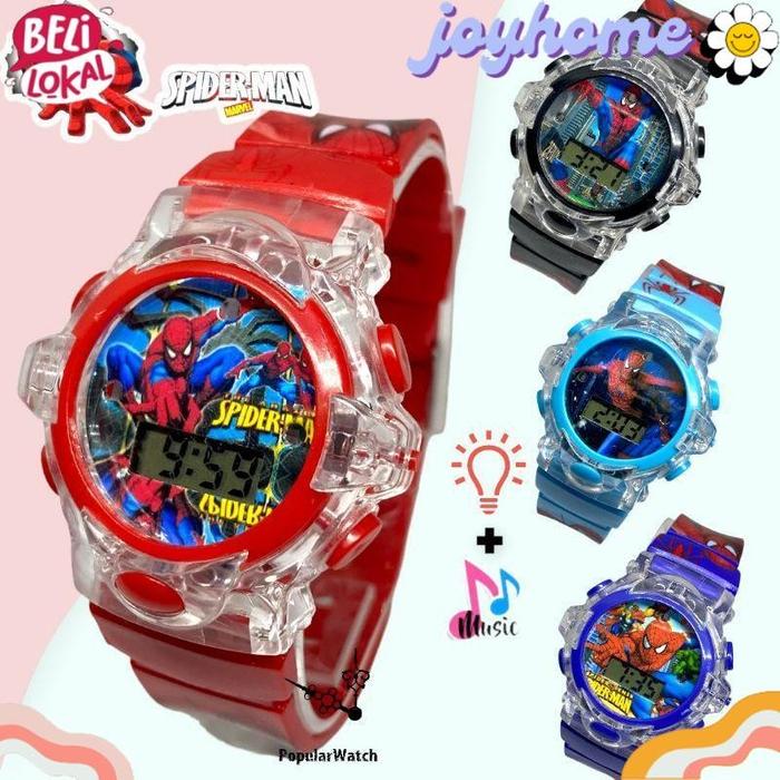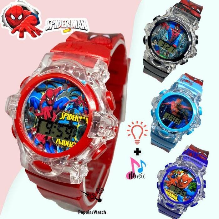 TERBARU JAM TANGAN DIGITAL ANAK KARAKTER COWOK ADA LAMPU DAN MUSIK MELODI - SPIDERMAN, BIRU TUA