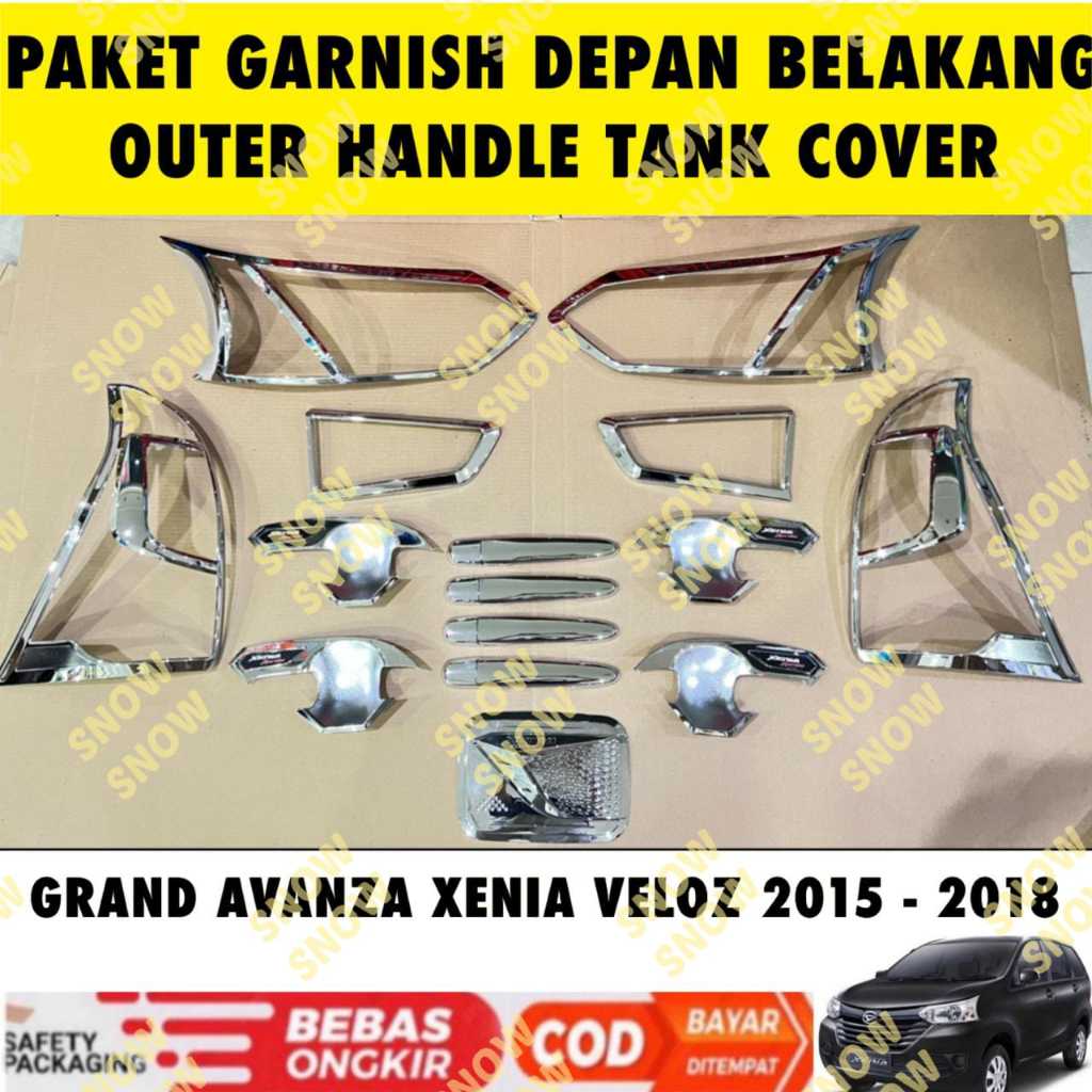 Paket Garnish Depan Belakang Outer Handle Tank Cover Grand All New Avanza Xenia Veloz 2015 2016 2017 2018 Hitam Chrome