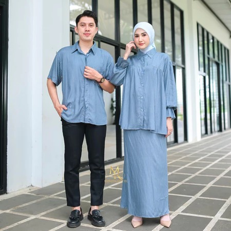 baju couple - Elora Series - Set Couple Kemeja Pria Salur & Set Rok Wanita Salur Outfit Couple Casual Muslim EMRA