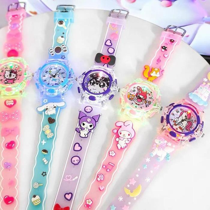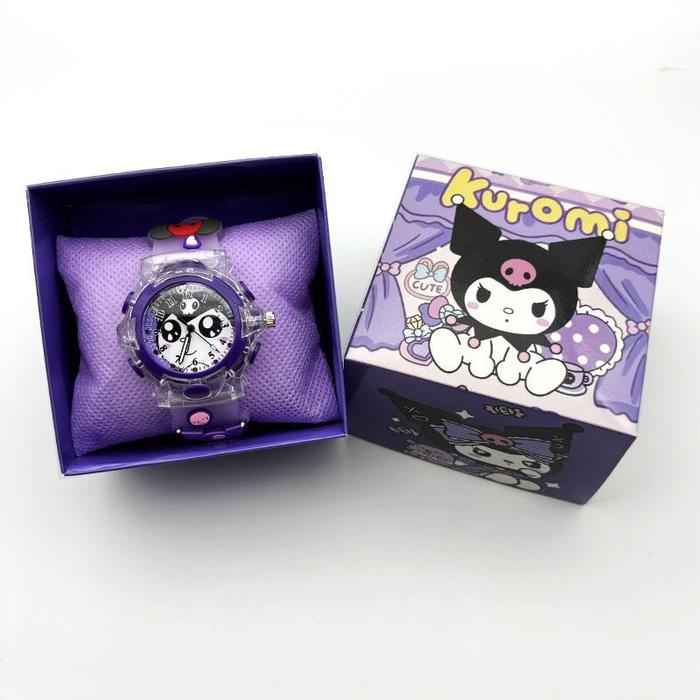 JAM TANGAN ANAK PEREMPUAN FREE BOX LED KARAKTER KUROMI CINNAMOROLL MY MELODY UNICORN - KUROMI