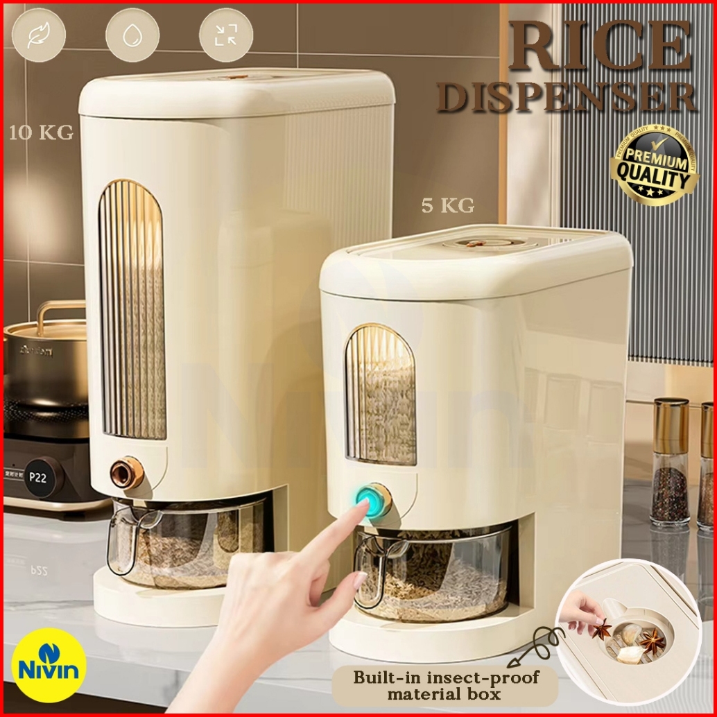 Nivin Dispenser Beras Otomatis Mewah Estetik 5 Kg 10 Kg Tempat Beras Mewah Anti Kutu Dan Serangga Kotak Tempat Wadah Pen