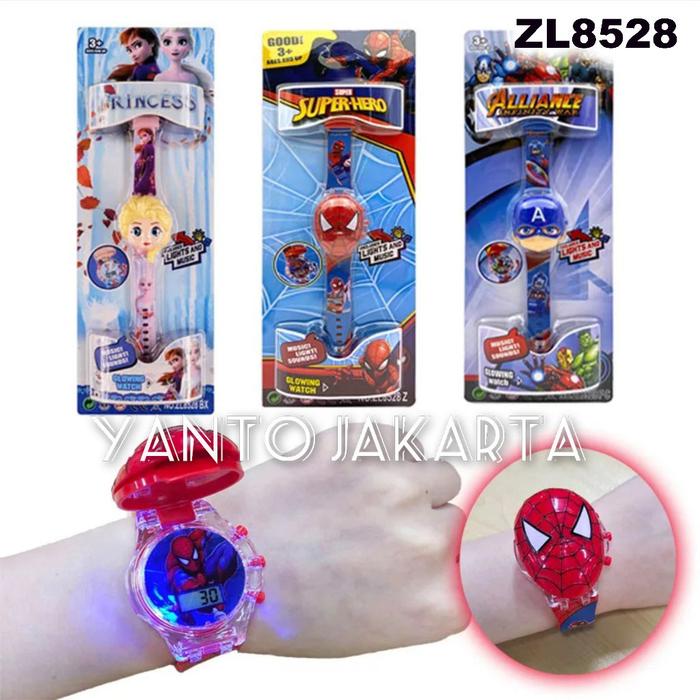 [GJT]JAM TANGAN ANAK LAKI LAKI KARAKTER LAMPU MUSIK MELODI - ZL8528-SPIDERMAN