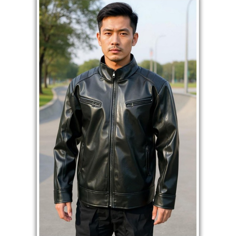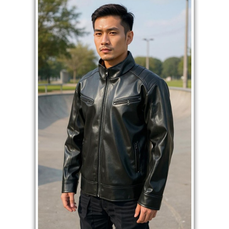 FLASH SALE Dhozen Jaket Semi Kulit Viena Riding Poket Ritsleting