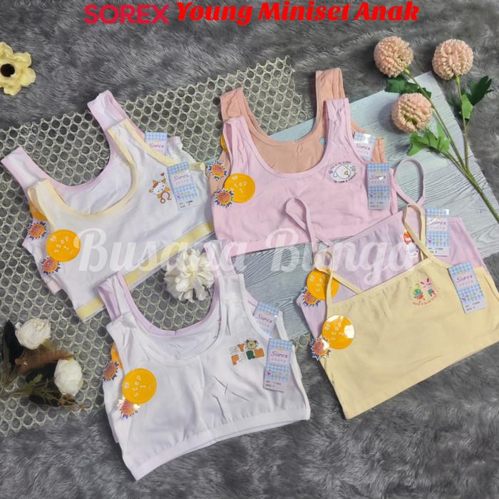 Sorex Young (3Pc, 6Pc, 12Pc) Miniset Anak Perempuan Tanpa Busa Step 1/Tahap Pertama Y1004, Y1005, Y1006, Y1007 Katun Lem