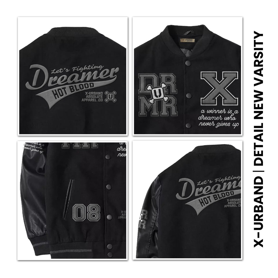 FLASH SALE Dhozen Jaket Varsity Dreamer A281 Full Bordir Tangan Semi Kulit