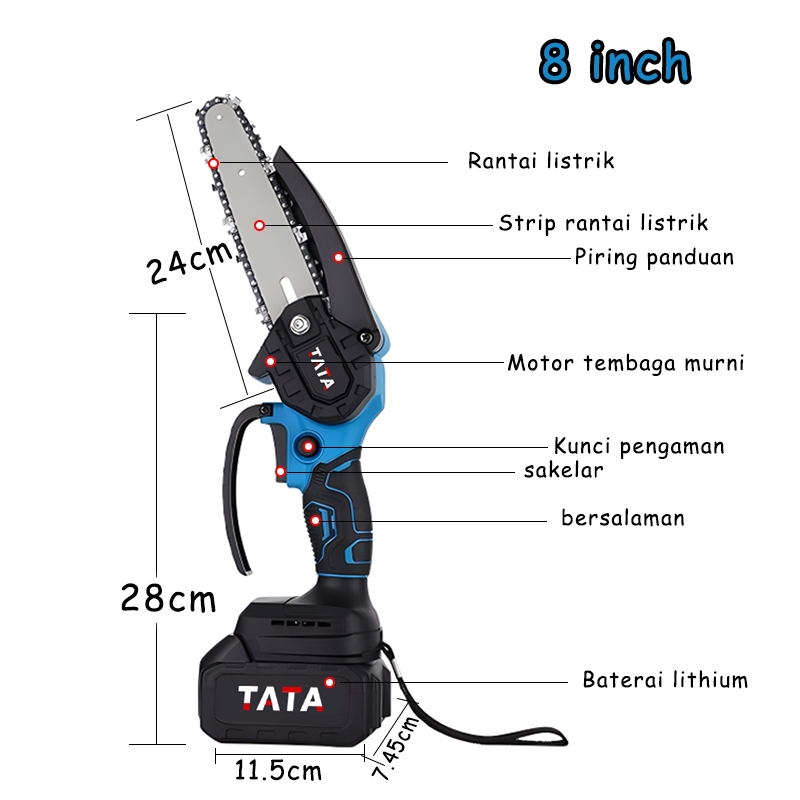TATA 8 Inch gergaji listrik mini gergaji listrik tanpa kabel Gergaji listrik kecil rumah tangga/6 Inch 2 Baterai gergaji