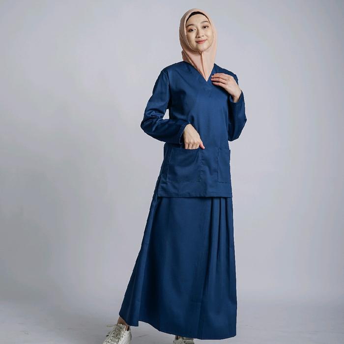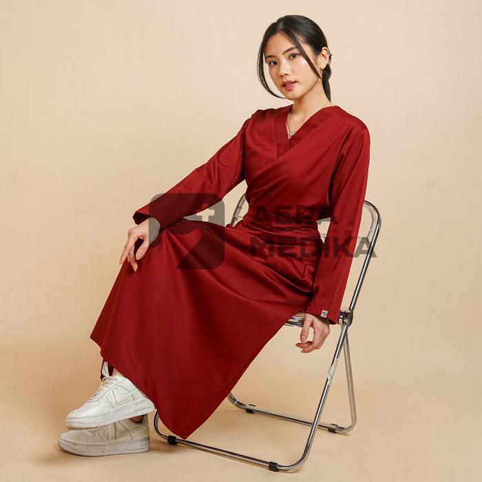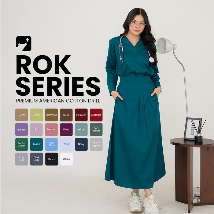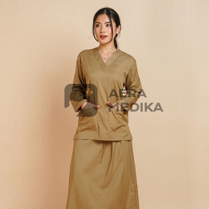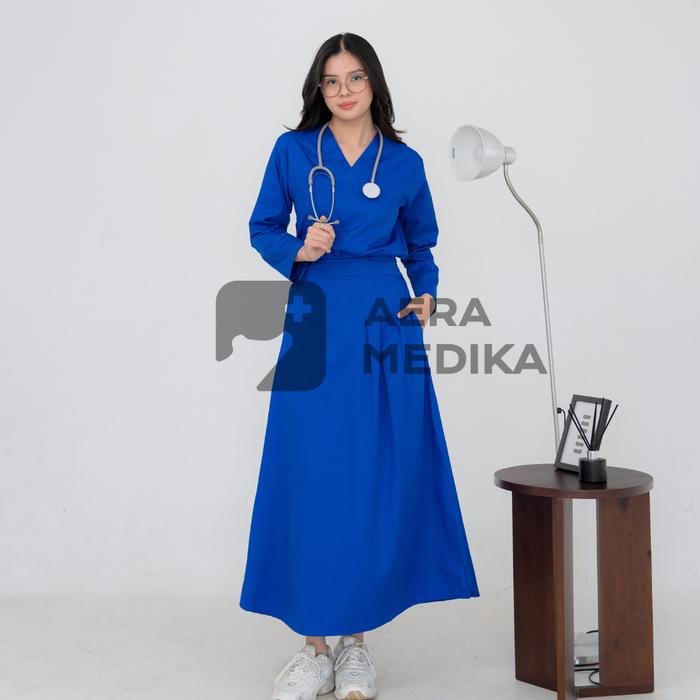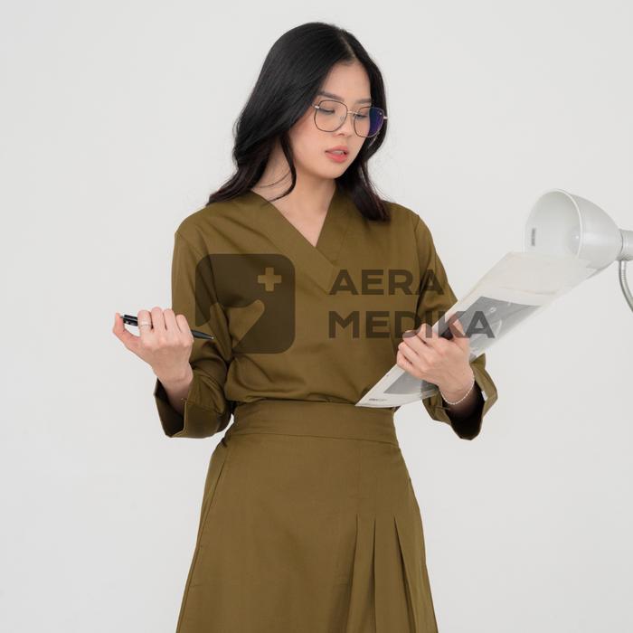 AERAMEDIKA - SCRUB MEDIS ROK / BAJU JAGA / OKA / SERAGAM PERAWAT DOKTER KLINIK LENGAN PANJANG WANITA SETELAN KERJA - EDAMAME, M
