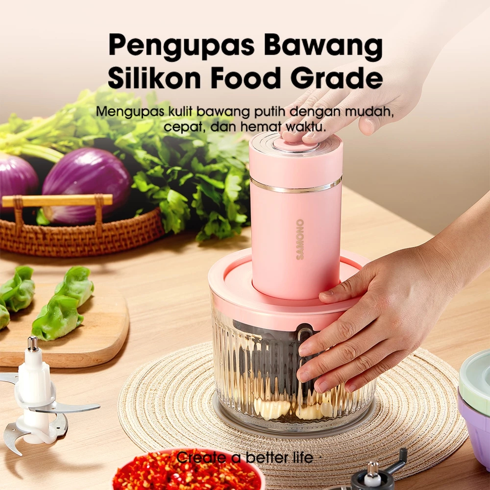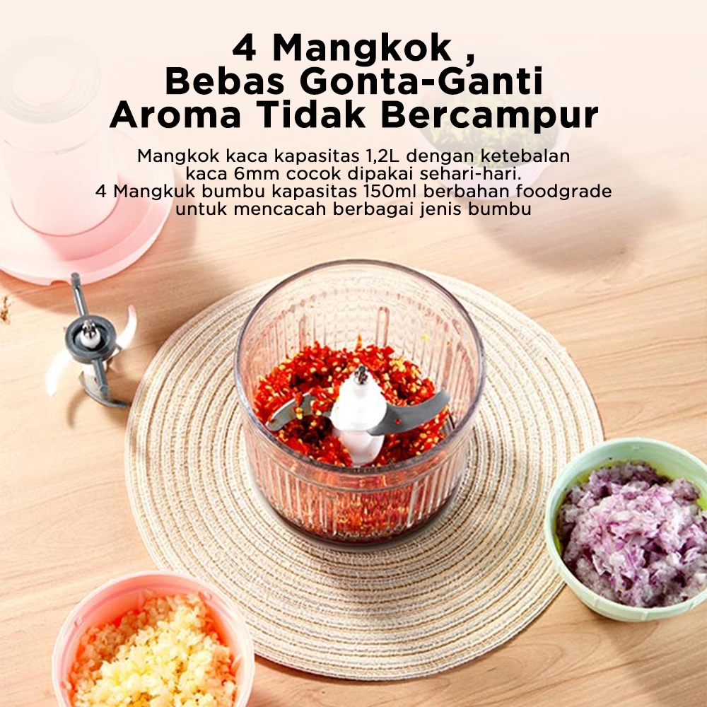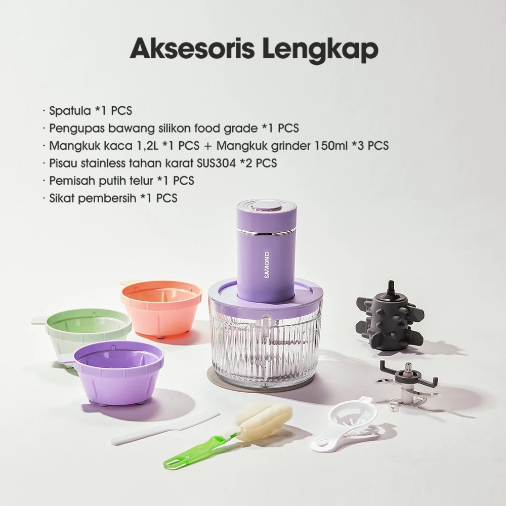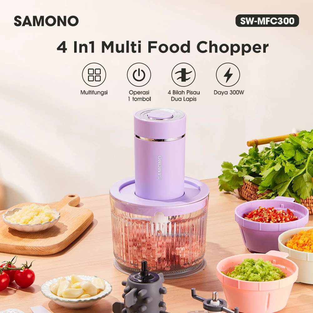 mall inline badgeSAMONO SW-MFC300 Food Chopper Penggiling Daging Bumbu Dengan Pengupas Bawang Wadah Kaca 1,2L + 3 Cup