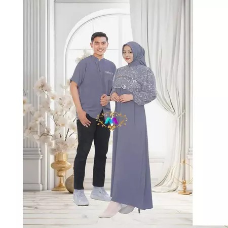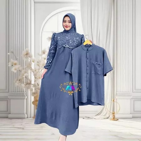 Baju couple - gamis couple - ARABELLA SET COUPLE 3in1 / Baju pasangan pesta kondangan / CP gamis syari mewah Lebaran