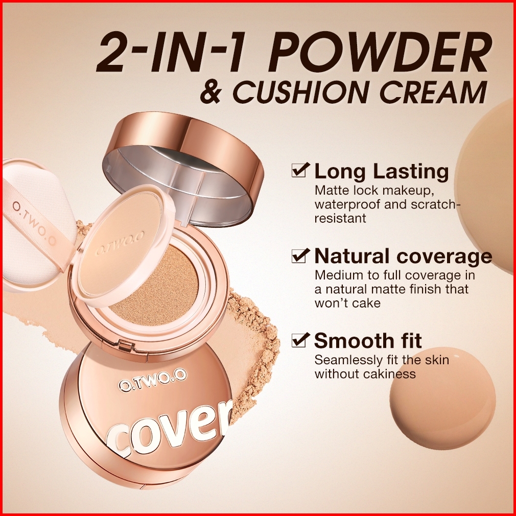 O.two.o 2 In 1 Soft Focus Powder Cushion Cream Long Lasting Waterproof Natural Oil Control Face Makeup