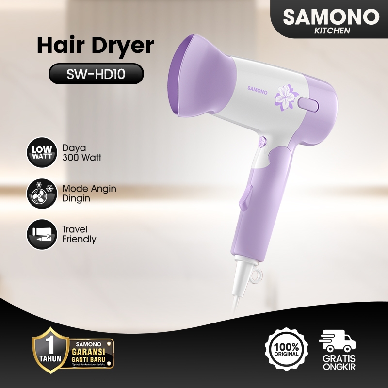 mall inline badgeSAMONO Hair Dryer Angin Dingin dan Hangat 2 Speed 300 Watt SW-HD10 Pengering Rambut Mini Travel Friendl