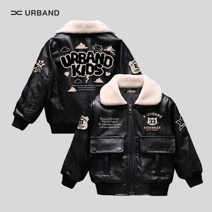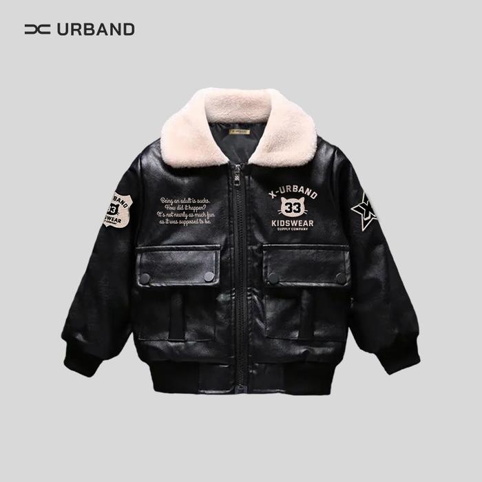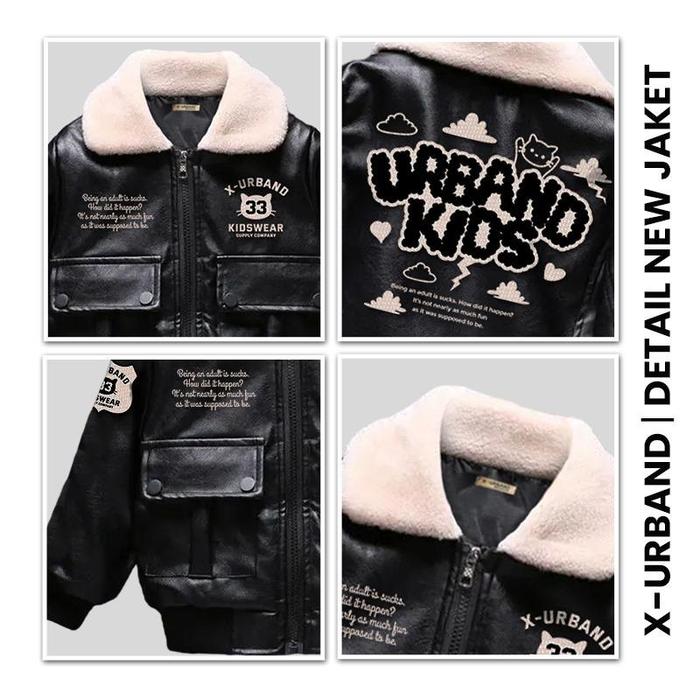 X URBAND KIDS JAKET BOMBER ANAK SEMI KULIT FT SHERPA TERBARU - HITAM, NO 2