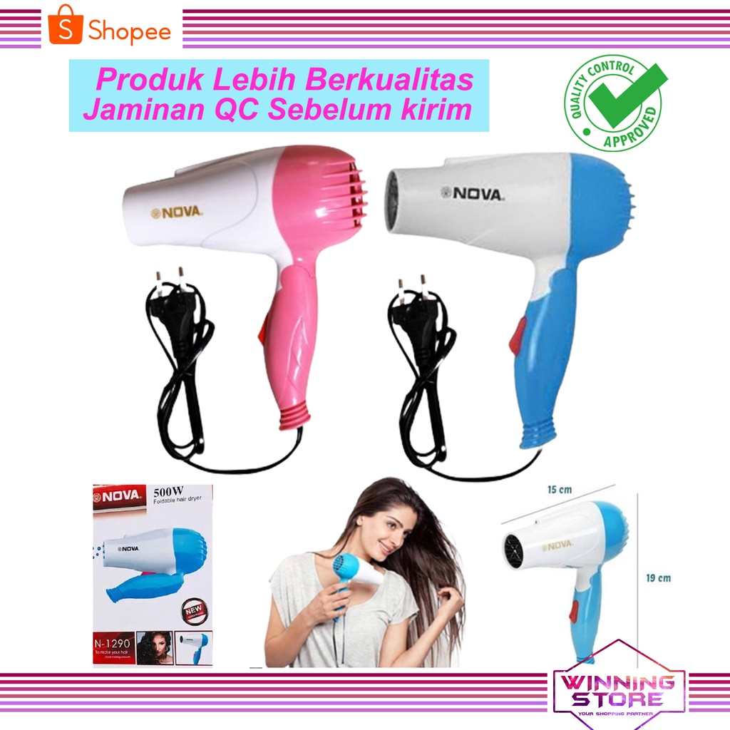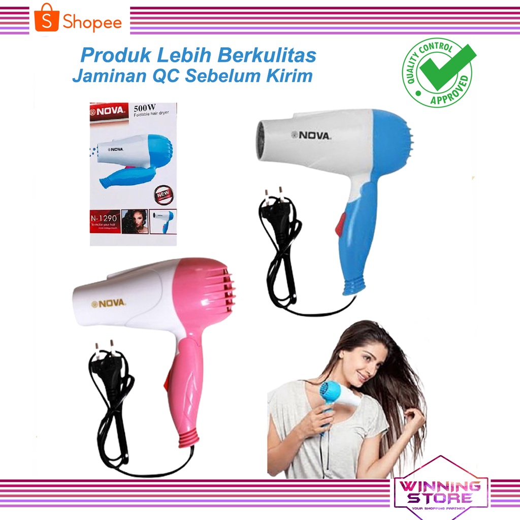 Hair Dryer Lipat Nova NV-617B dan NV-1290 Pengering Rambut Lipat Ukuran Medium - 1000W