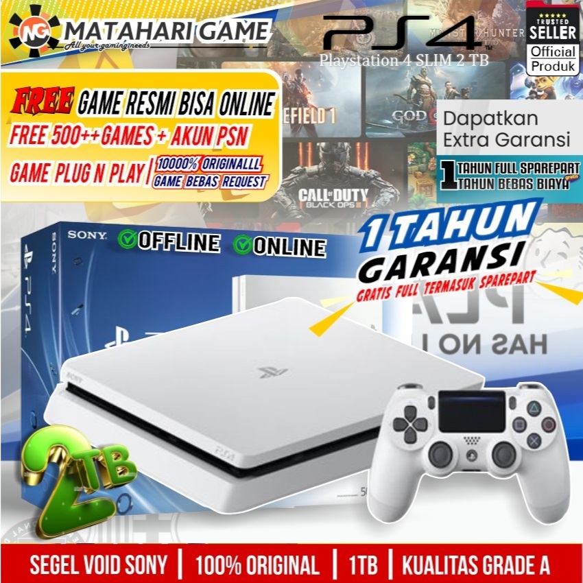 Playstation 4 SLIM Original | PS4 SONY 2TB PUTIH Bonus 200++ Games GARANSI 1TAHUN