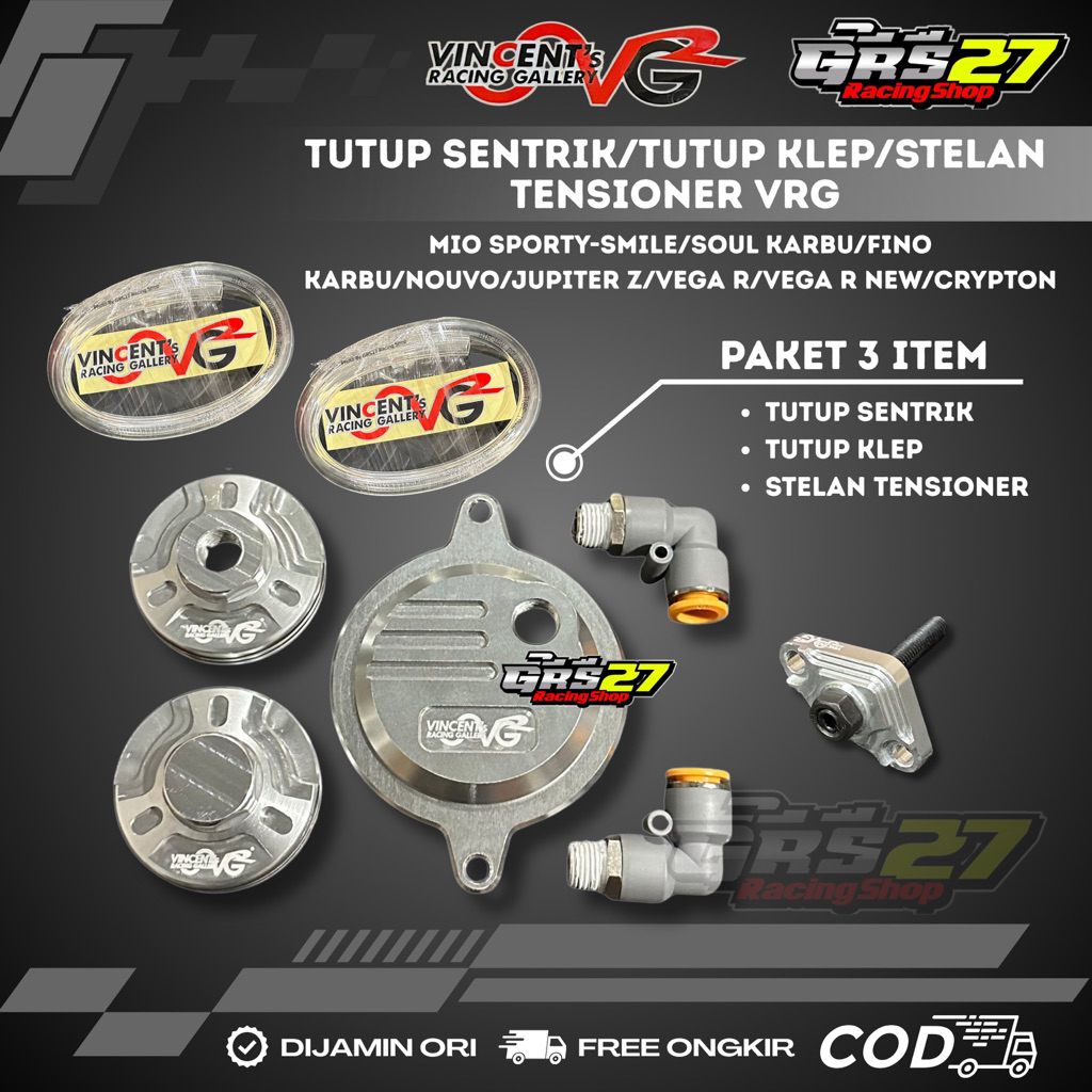 PAKET TUTUP SENTRIK TUTUP KLEP STELAN TENSIONER VRG MIO SPORTY/SMILE SOUL FINO KARBU NOUVO JUPITER Z VEGA R CRYPTON PAKE