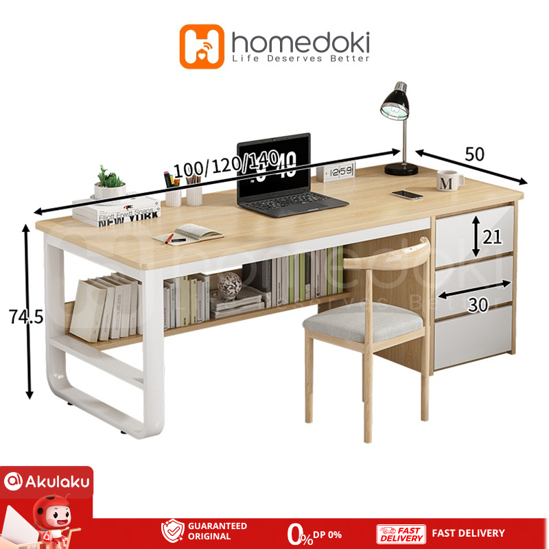 Homedoki Meja Kantor Minimalis Set Kayu Jati Besi Kuat Kokoh Murah Putih Ikea Panjang Meja Kerja