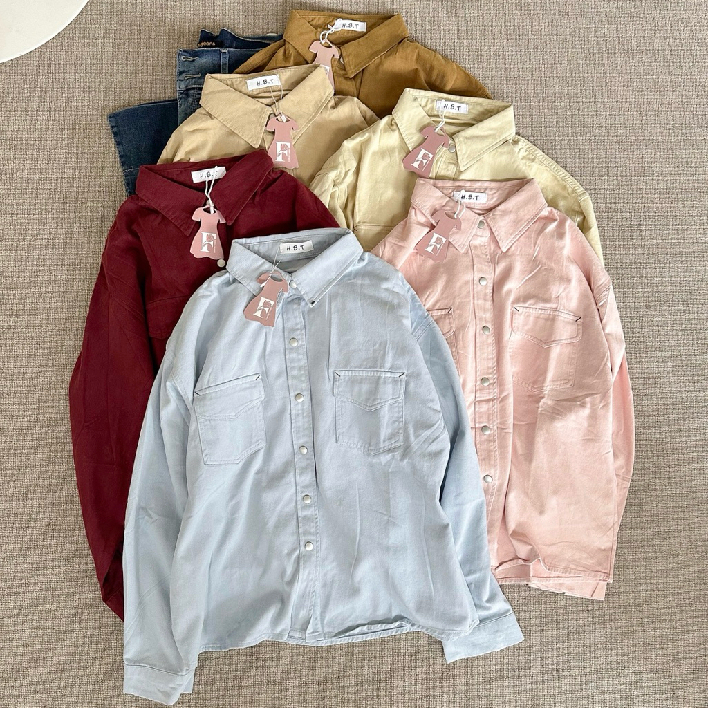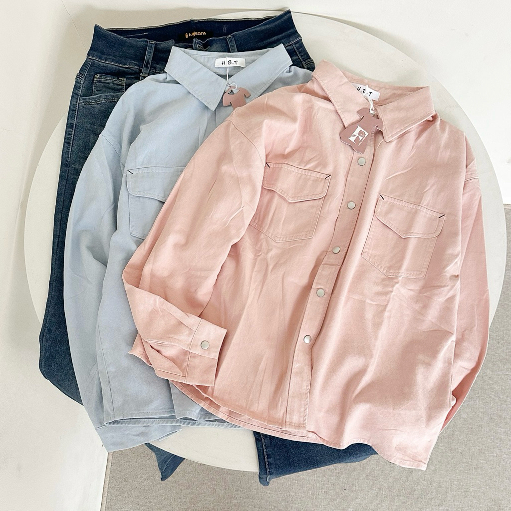KEMEJA POLO WANITA LENGAN PANJANG GARIS-GARIS KEMEJA POLO BAHAN SOFT JEANS HALUS PREMIUM TREN FASHION BAJU WANITA