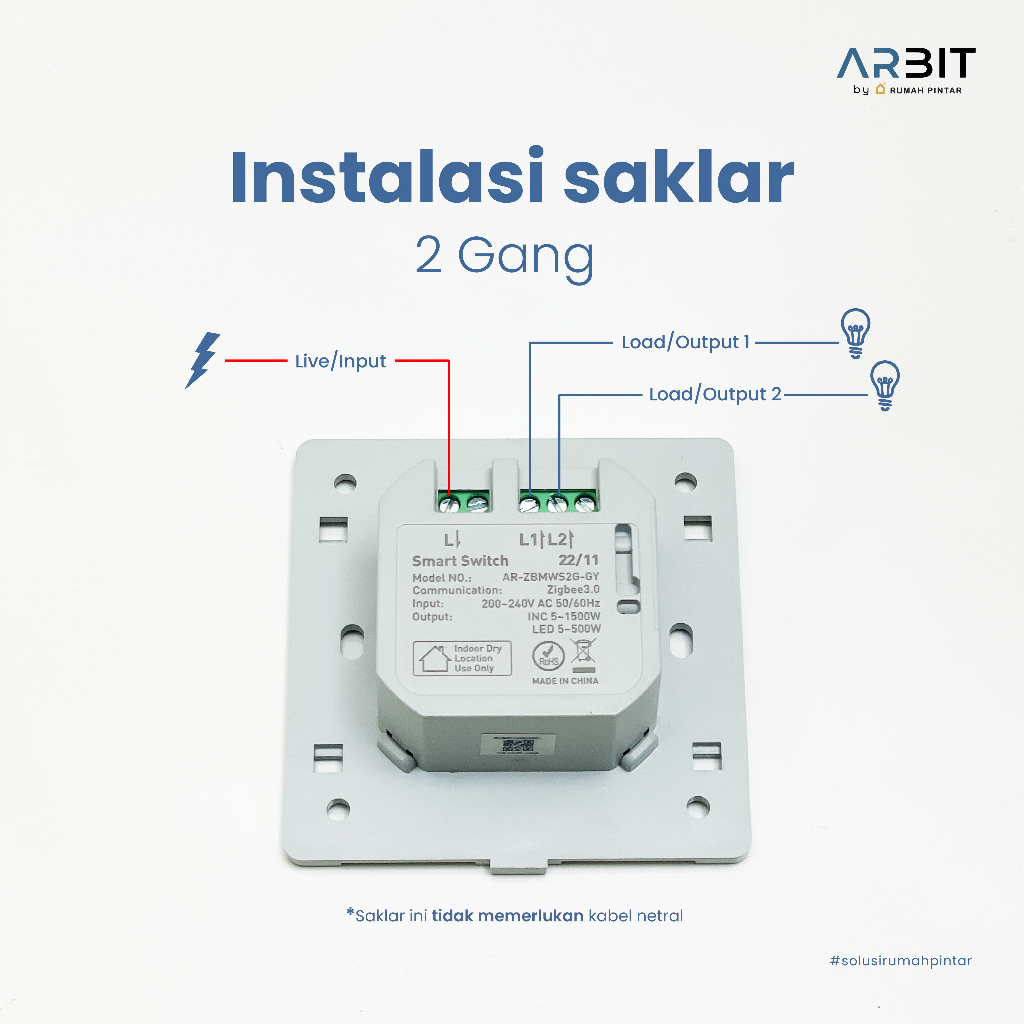 ARBIT Smart Home Zigbee Wall Switch 2 Gang Tombol Cetekan without Neutral Line Saklar Pintar White