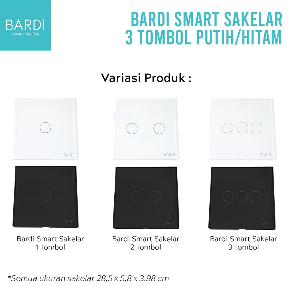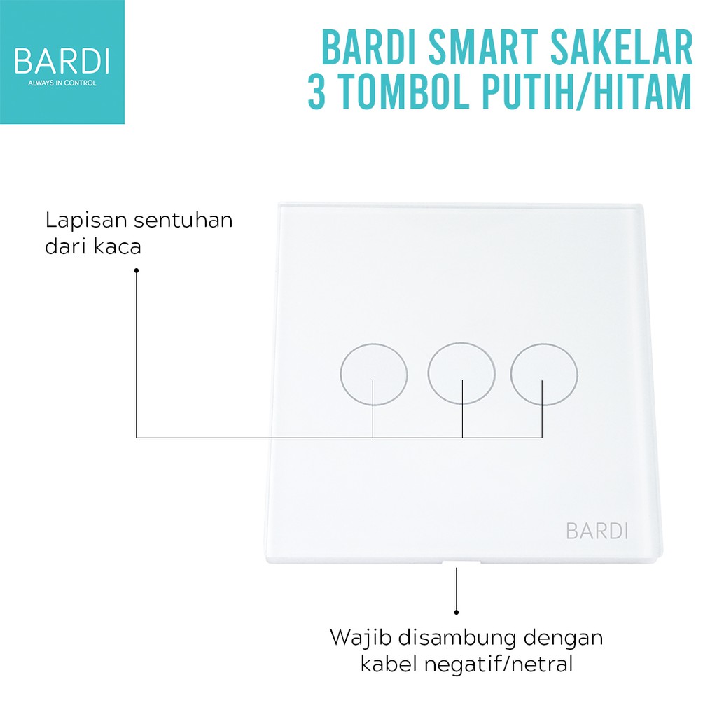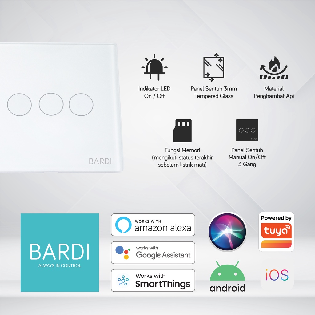 BARDI Smart Wall Switch Touch EU3 Gang WiFi Saklar Pintar