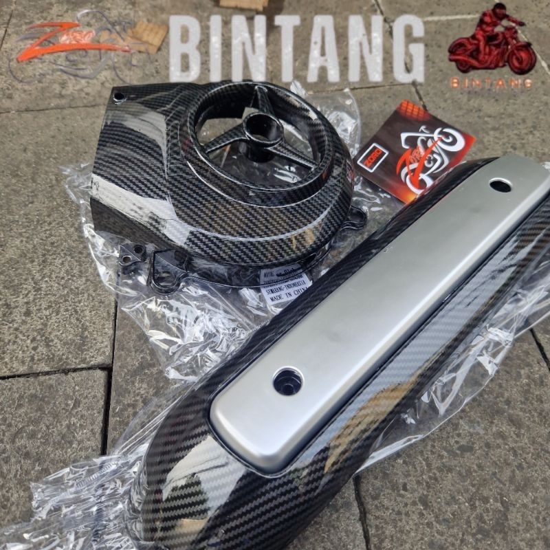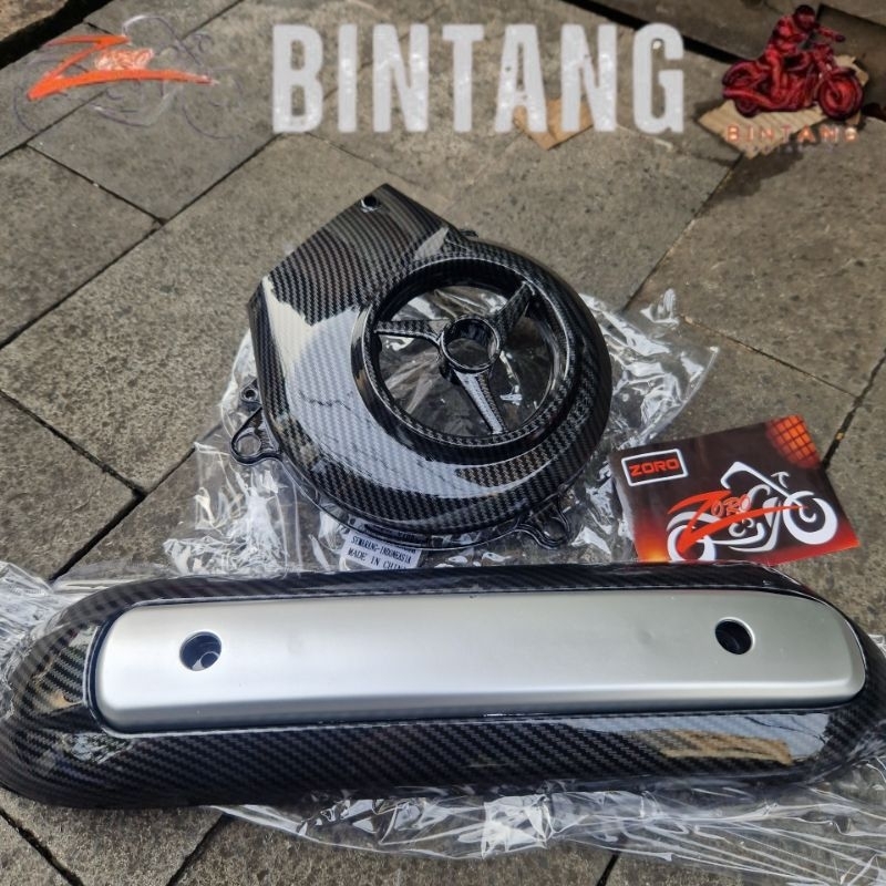 Paket Tutup Kipas Tameng Knalpot list Mio Sporty/Mio smile/Mio Soul Karbu CARBON ZORO IMPORT