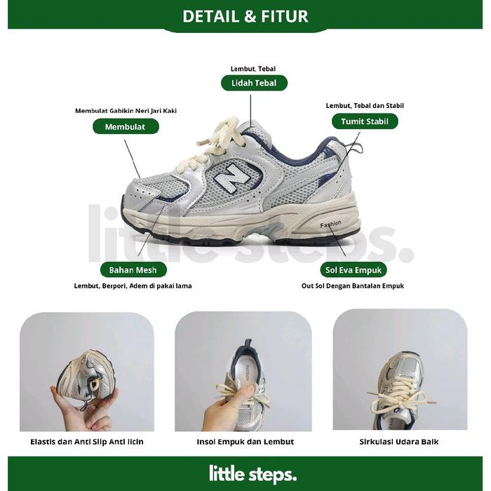SEPATU SNEAKERS ANAK NB 530 / SEPATU NEW BALANCE ANAK / SEPATU NB ANAK LAKI LAKI PEREMPUAN / FASHION CASUAL ANAK - WHITE SILVER, 27