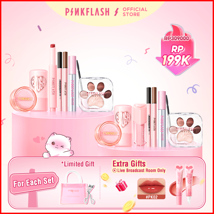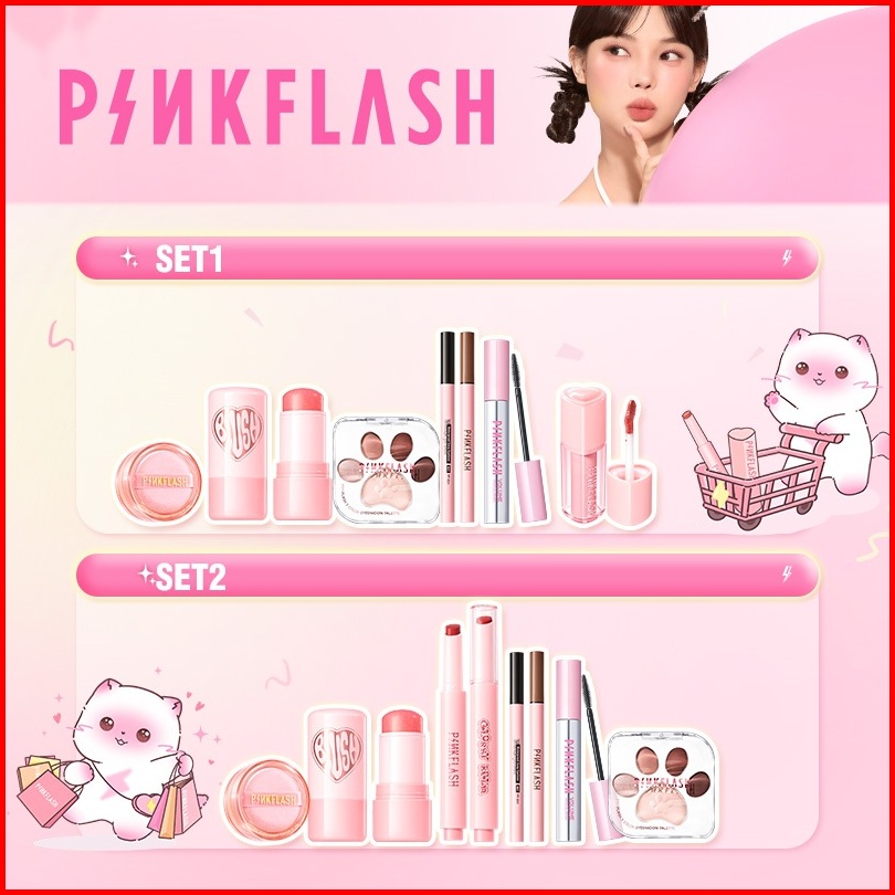 11.11 Launch Special Pinkflash 7pcs Makeup Set Eyeshadow Palette Liquid Eyeliner Volume Mascara Loose Powder Bubble Glow