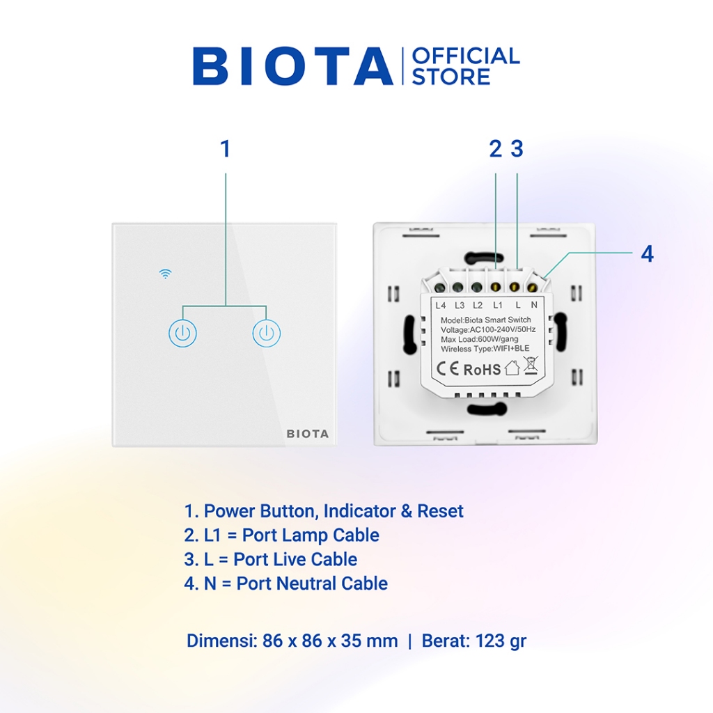 BIOTA Smart Wall Switch 2 Gang - Wi-Fi IoT Home Automation