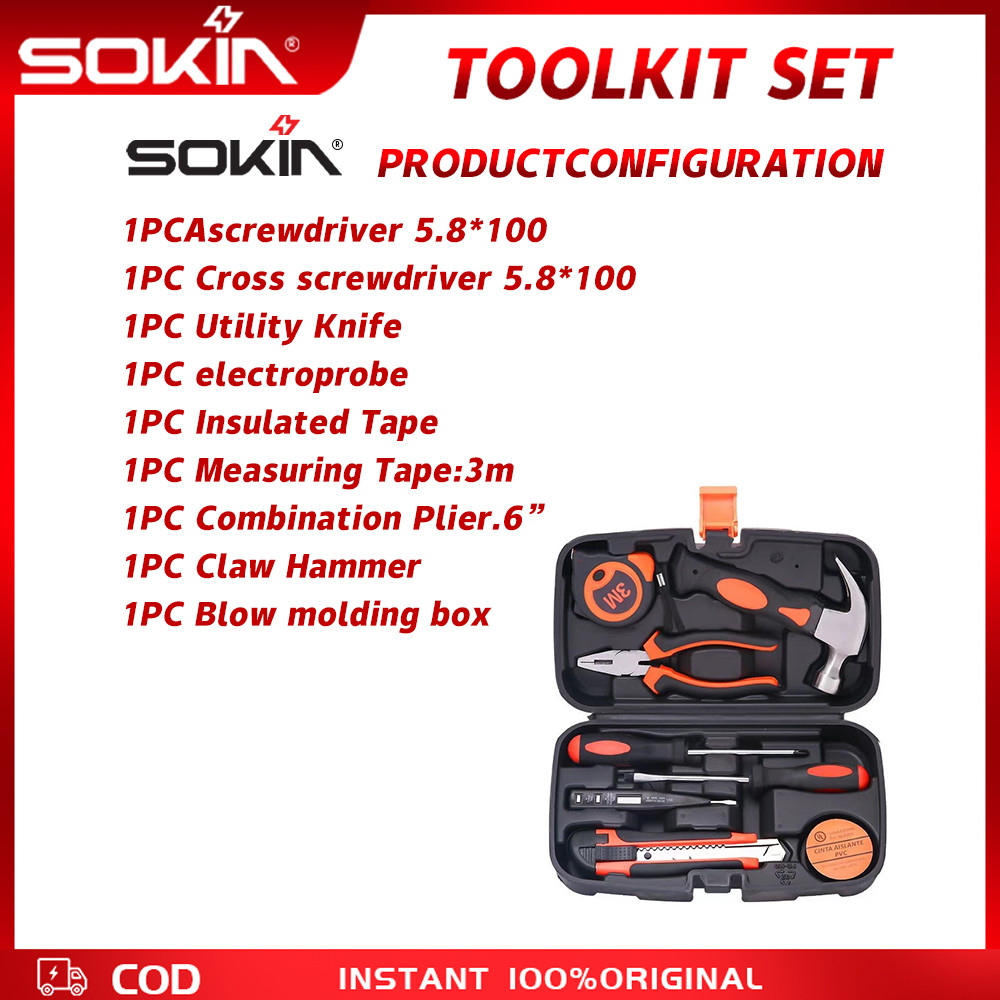 sokin Hand Toolset 9PCS Tool Kit Alat Rumah Tangga Tool Kit Set Toolkit Toolbox Complete Toolset Pliers Screwdriver/Mete