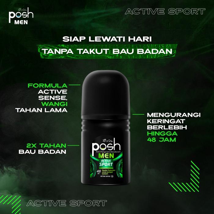 Posh Men Deodorant Roll On Active Cool 50 ml - Anti Bau Badan - Active Cool